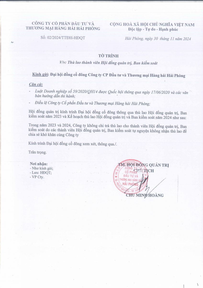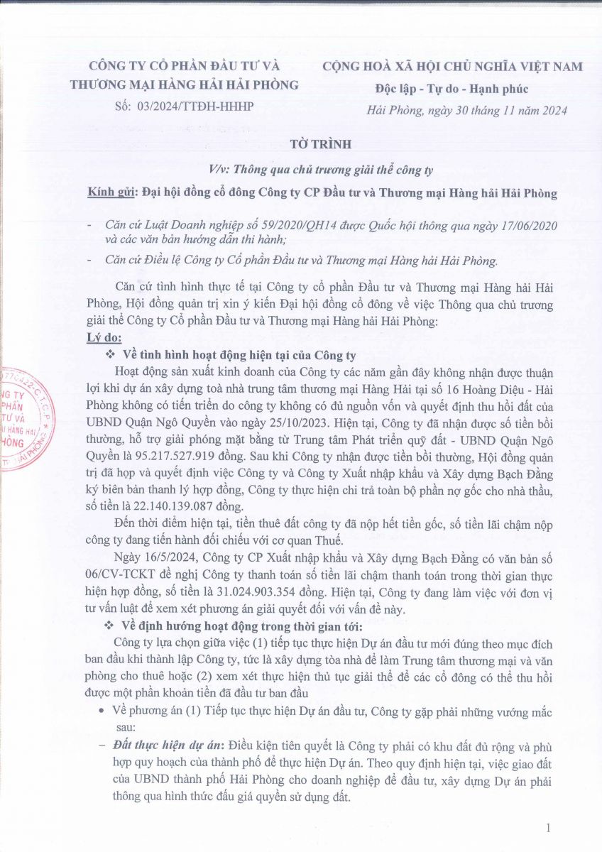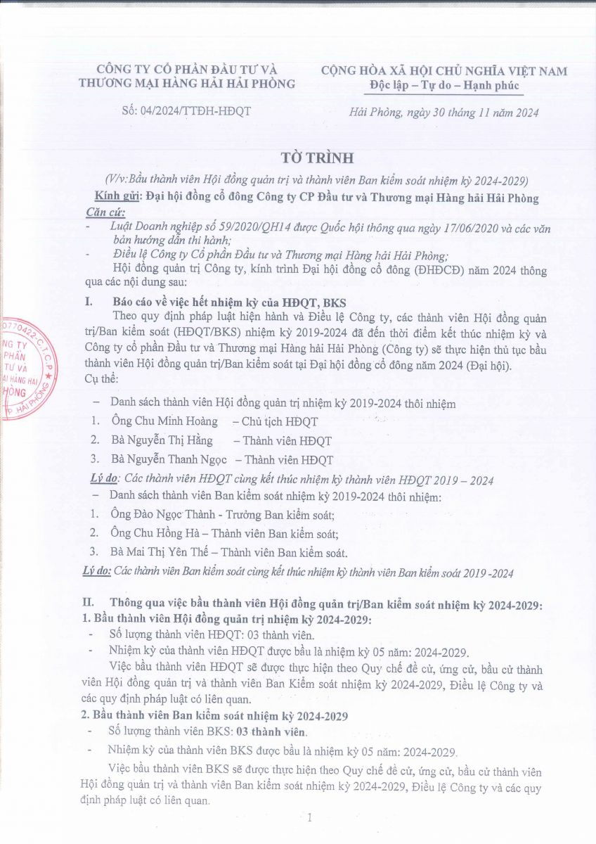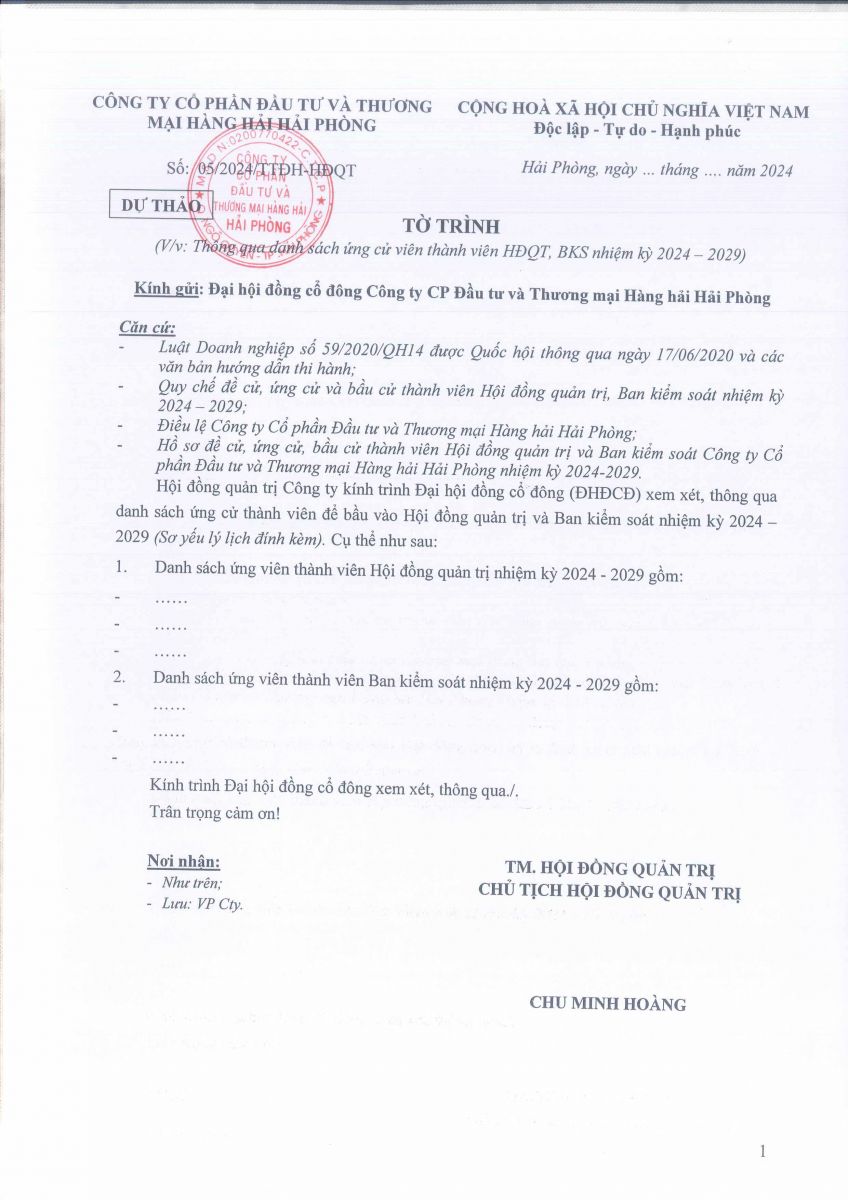 Báo cáo - Tờ trình họp ĐHĐCĐ năm 2024