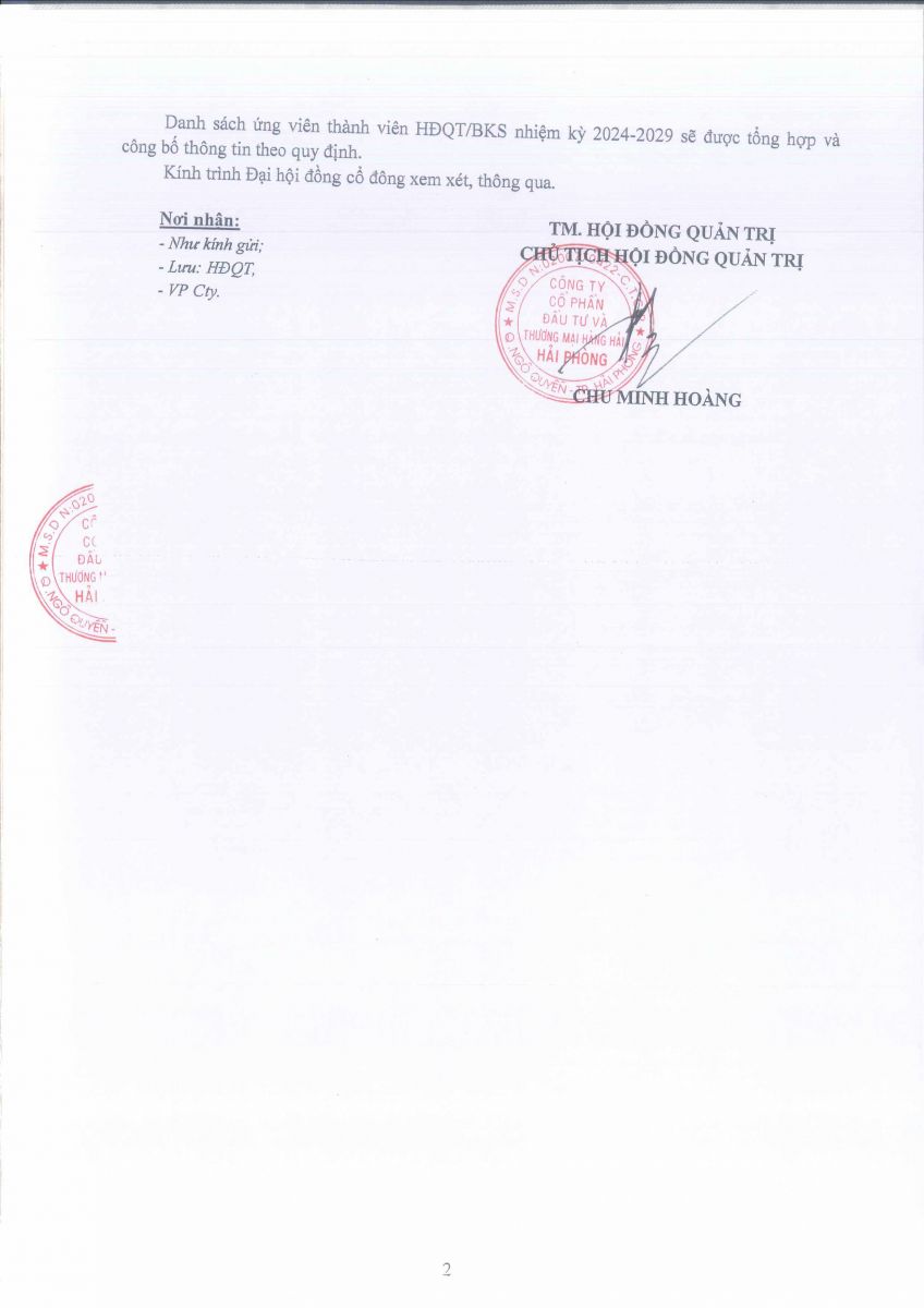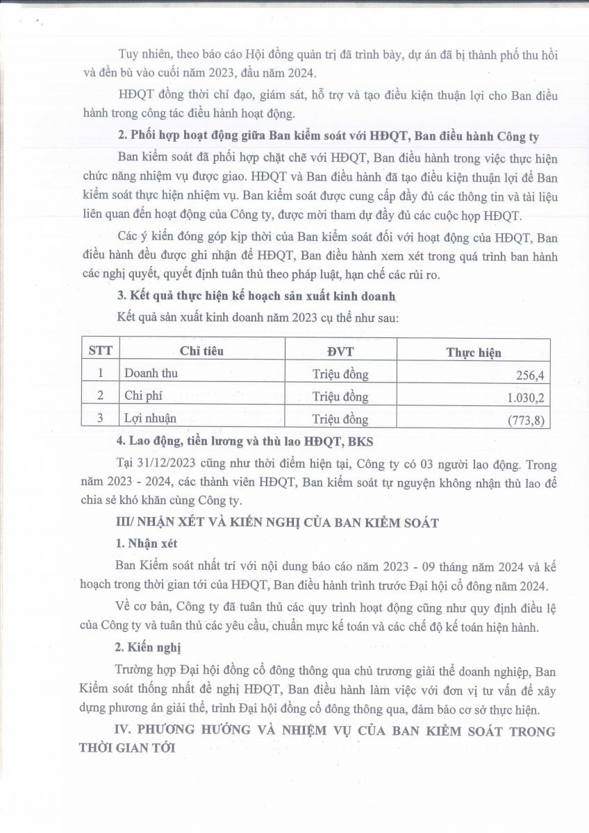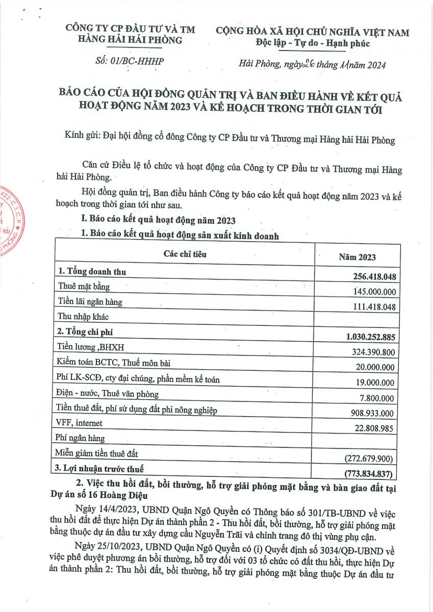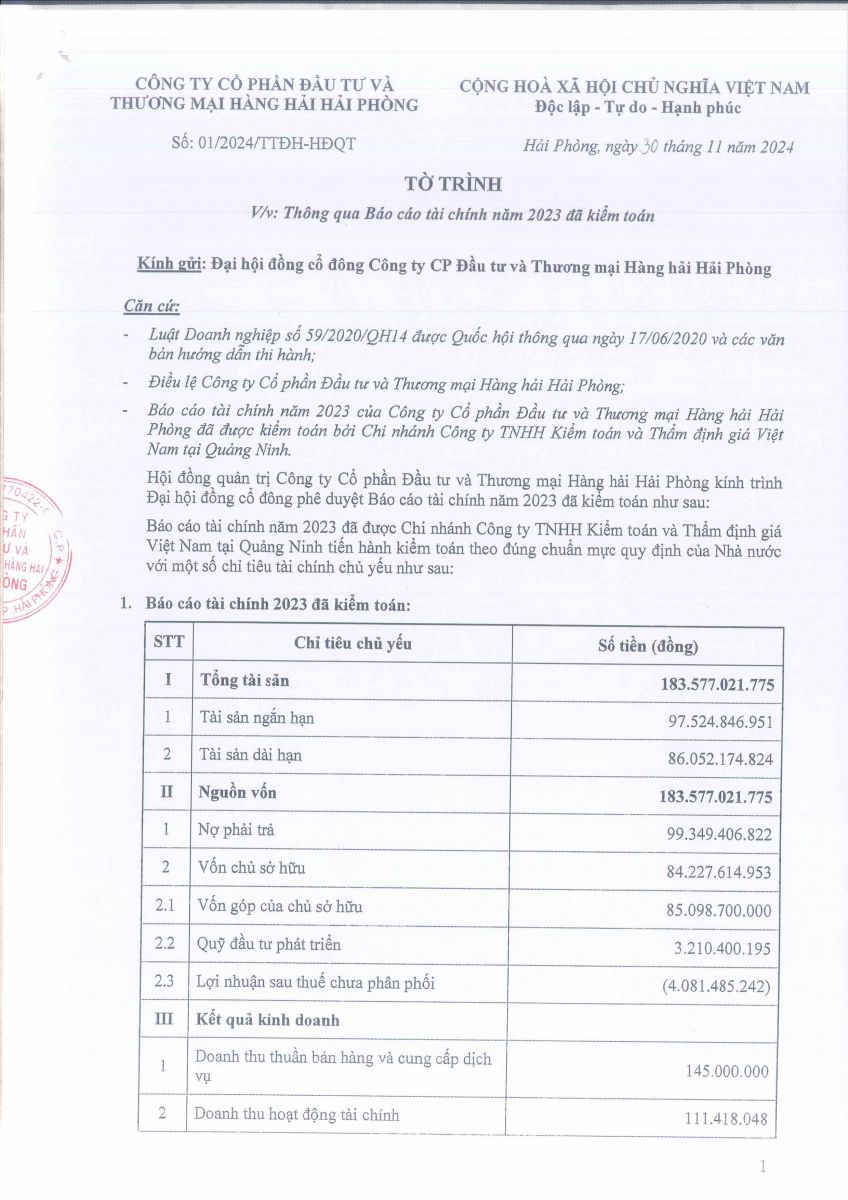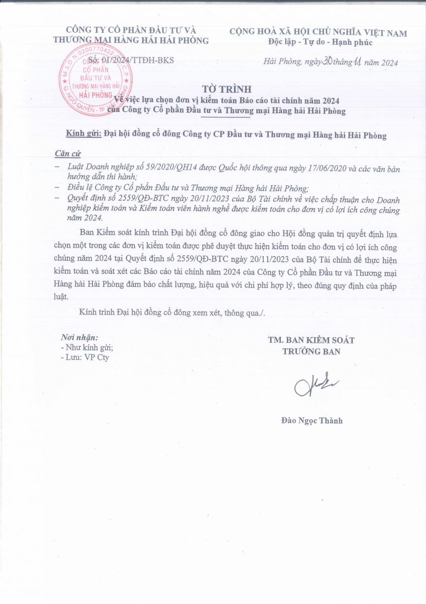 Báo cáo - Tờ trình họp ĐHĐCĐ năm 2024