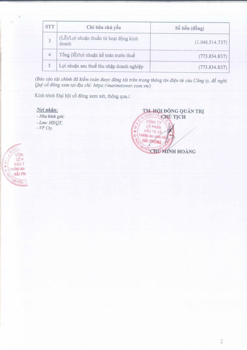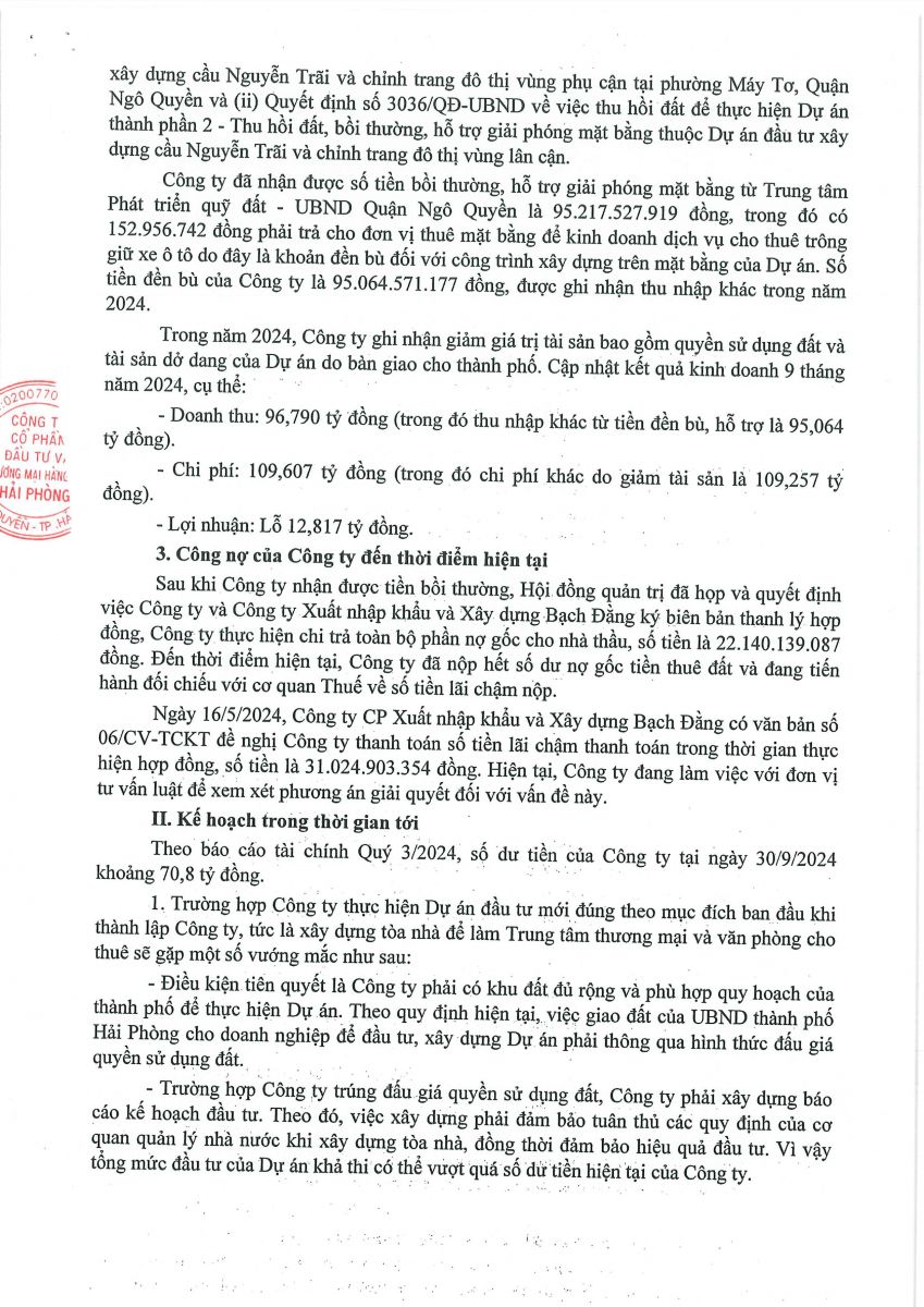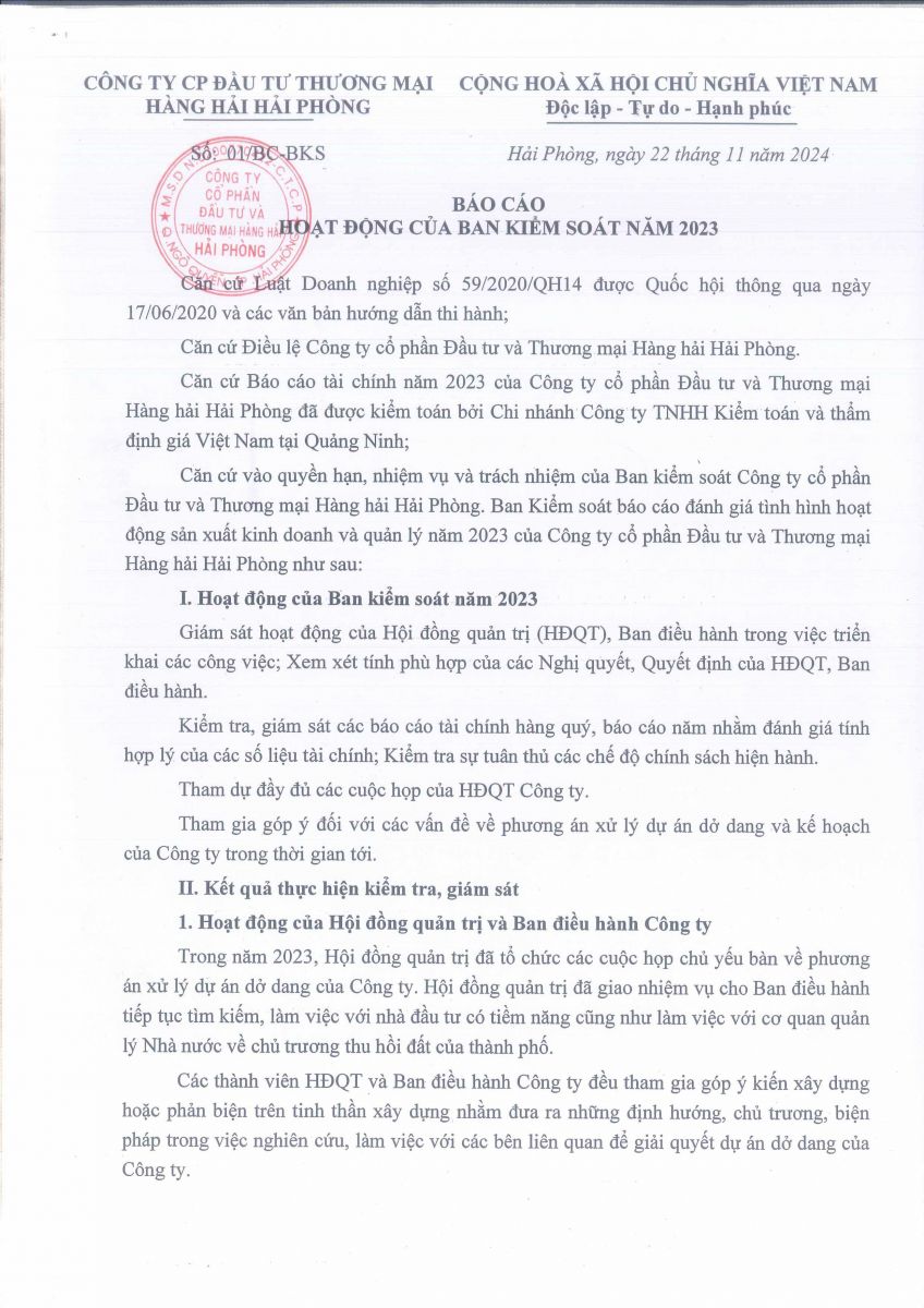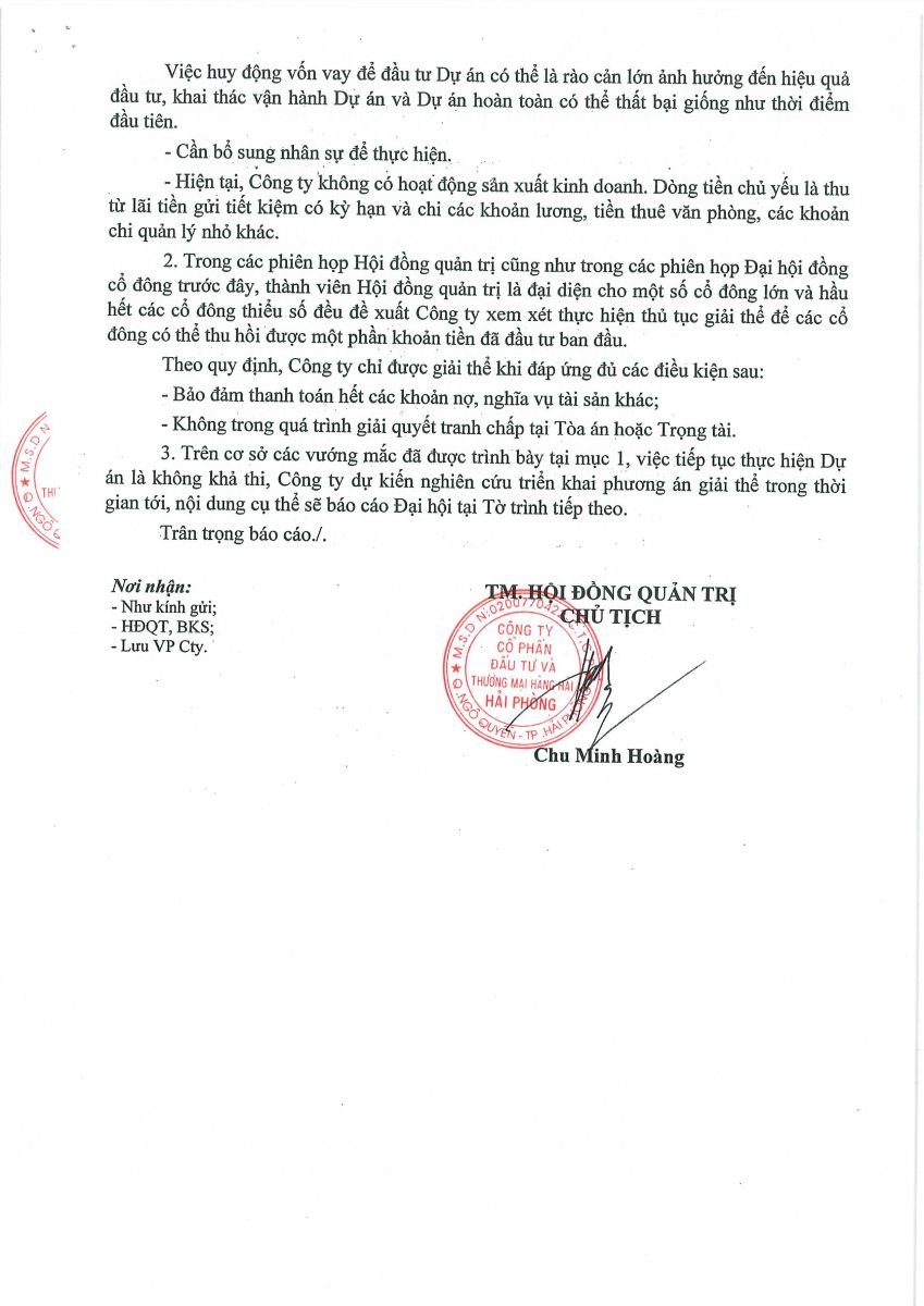 Báo cáo - Tờ trình họp ĐHĐCĐ năm 2024